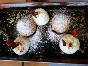Merengue, torta de maça com sorvete de canela e bolinhos de queijo. Lindas!!