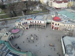 As cabines que não puderam ser recolocadas estão na parte de baixo da roda-gigante, como uma exposição, através da qual se pode viajar pelas diferentes épocas do passado da capital: o Império Romano, a Idade Média, as guerras contra os turcos, a Exposição Mundial de Viena ou as catástrofes ocorridas durante as guerras mundiais.