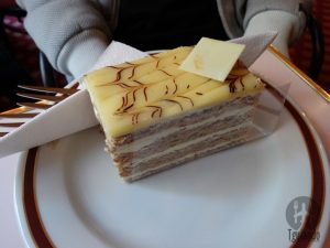 Pedimos esterhazyschnitte, € 4,9, e claro a mais famosa original Sacher-torte mit schlag, € 5,6.