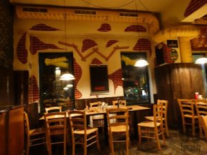 Por volta das 22:30h entramos no restaurante Centimeter. Um prédio de esquina, iluminado. Dentro estava vazio; o restaurante é grande com diversas mesas.
