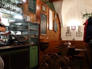 Um espaço super típico, desde a fachada, cadeiras e mesas grandes de madeira, funcionários com trajes e a comida… ah, a comida!!