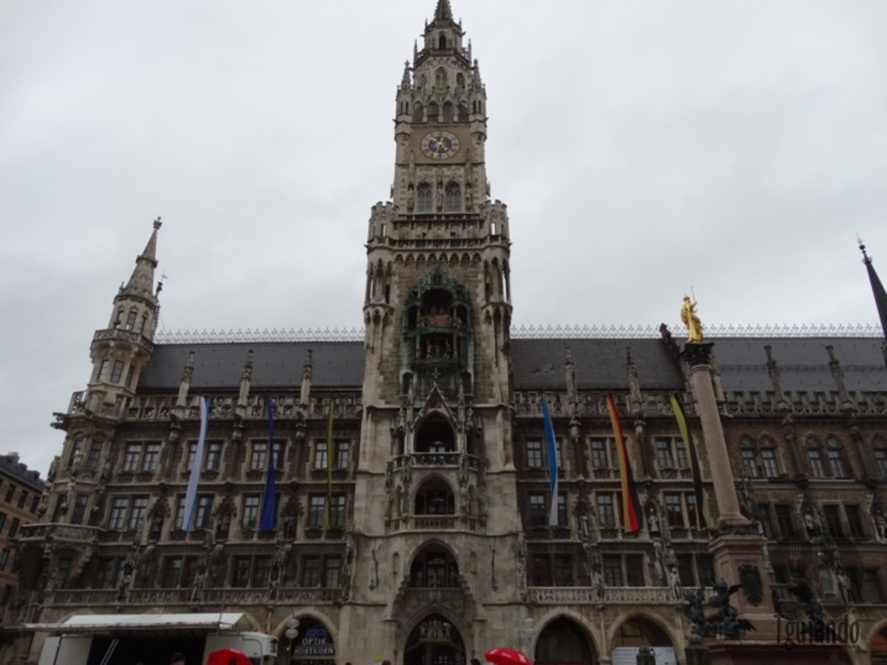 A construção mais imponente na Marienplatz é sem dúvida o prédio da nova prefeitura.