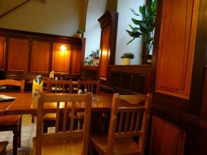 Talvez devido o horário, estava vazio, então logo nos arrumaram uma mesa grande e trouxeram as cervejas. Por ser uma troca pelo museu, que estava incluso no valor da viagem, não pagamos nada.