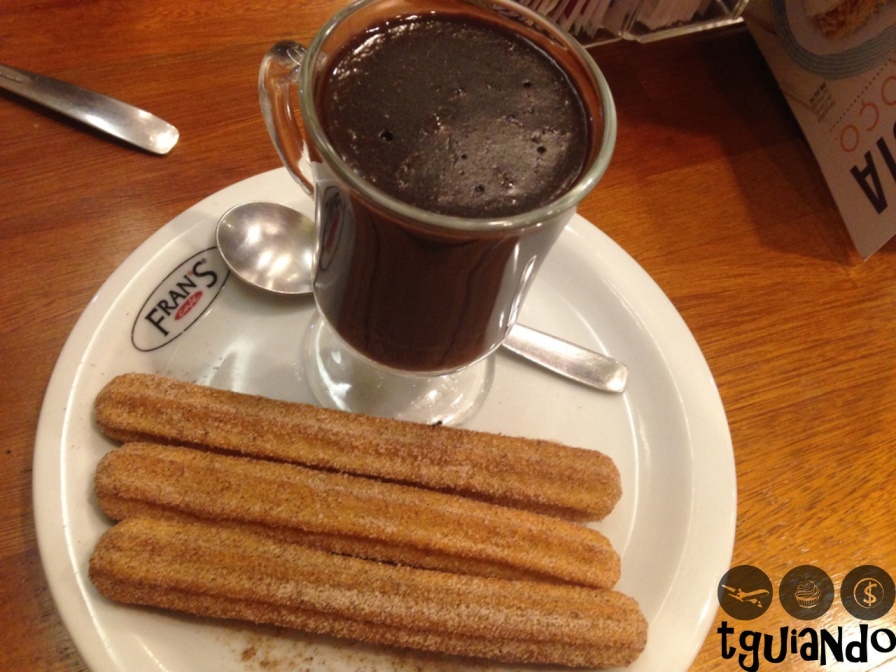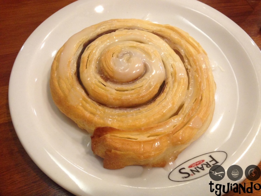 Pedimos cappuccino grande, R$ 9,80, latte barista macadâmia, R$ 8,80, Fran’s ciocollatta com churros, R$ 13,30. O de macadâmia é bom!! O chocolate é super cremoso e quente. Para comer, dividimos um roll de canela, R$ 7,60.