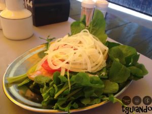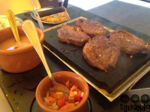Lugar de bastante movimento e famoso pela picanha na pedra, portanto, foi esse o prato pedido (medalhões de picanha servidos na pedra acompanhados de arroz, feijão, farofa portuguesa, vinagrete, salada de rúcula, tomate e cebola).