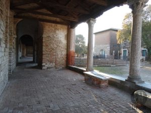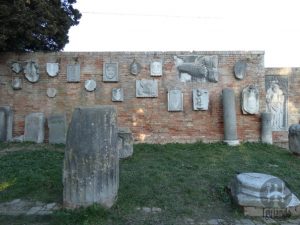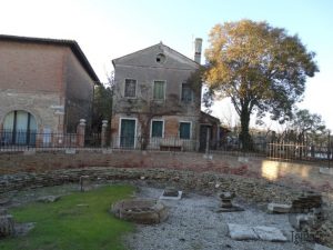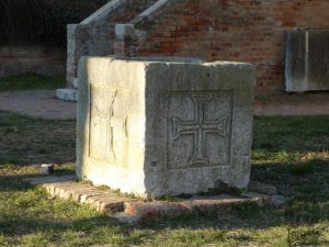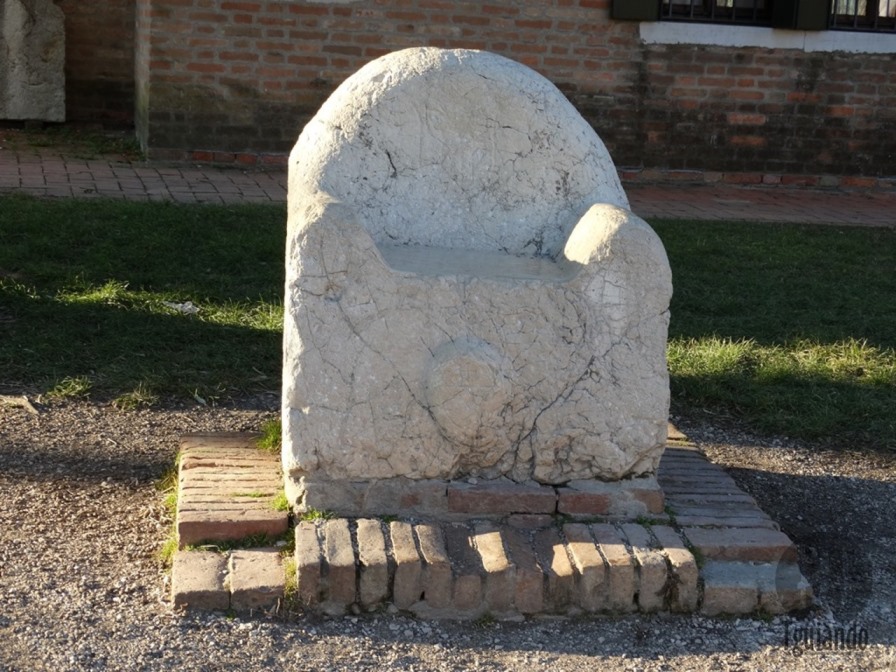Andando alguns minutos por uma calçada ao longo do canal, chegamos na Piazetta, com duas igrejas, o trono e um muro cheio de relíquias. Dizem que o trono teria pertencido ao próprio Átila durante a invasão dos Hunos na Península Itálica.