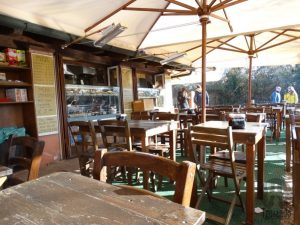 Havíamos pesquisado um pouco sobre o lugar. Escolhemos por ter mesas ao ar livre, próximo ao canal, e, pelas fotos, parecia legal. O que achamos bem diferente é a proposta de comer até o prato.