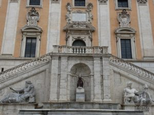 O monte capitolino é uma das sete colinas de Roma e é a primeira praça moderna criada na cidade, onde se situa a sede oficial do prefeito. São 124 degraus até o alto.