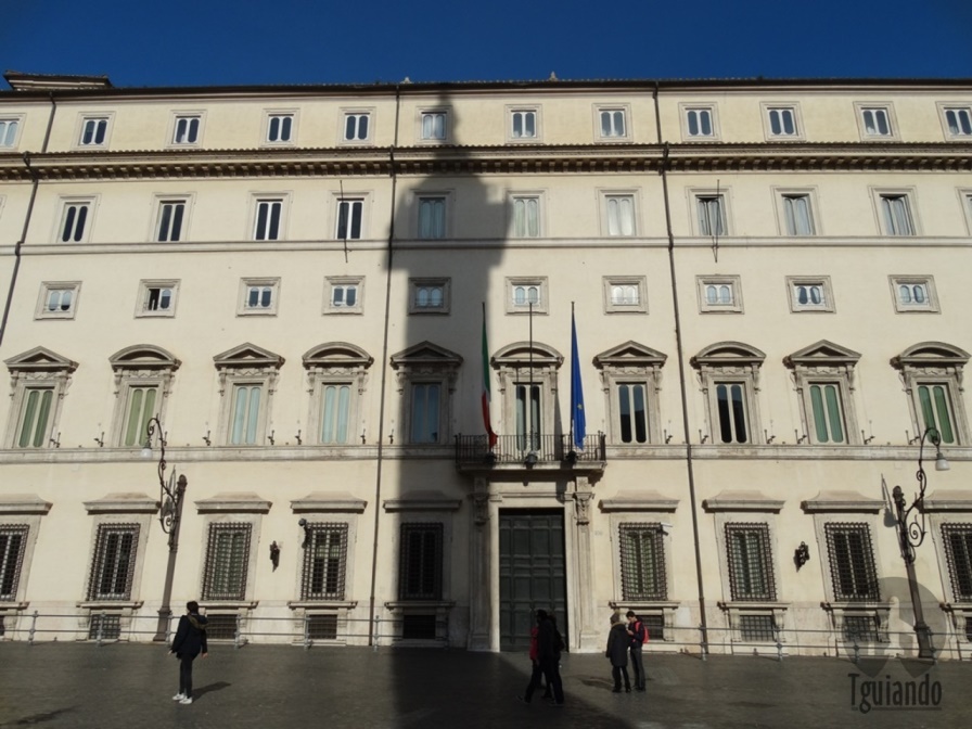 Sede do Presidente do Conselho de Ministros do governo italiano (atualmente Matteo Renzi). A entrada principal do palácio se encontra na Piazza Colonna de frente a coluna do imperador Marco Aurélio.