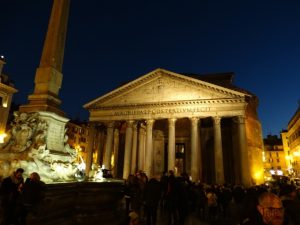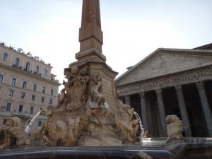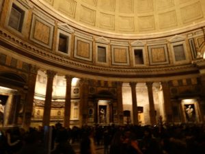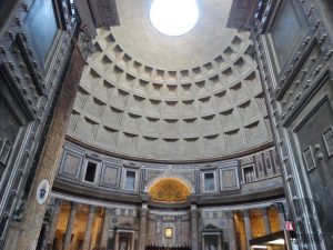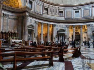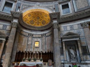 Bem no centro está o templo de todos os deuses: o Panteão. O magnífico interior tem 43,40m de diâmetro. Uma espécie de “olho”, por onde entram luz e ar, na parte de cima, chama bastante a atenção. Aqui estão os corpos de Raffaello e Vittorio Emanuele II de Saboia.