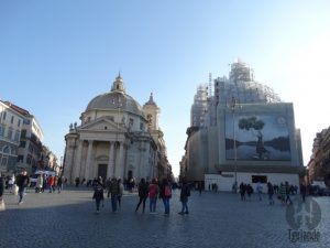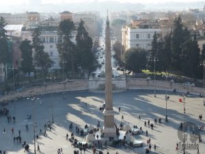 Praça do Povo, local que chama a atenção pelo tamanho e pela quantidade de elementos presentes no mesmo espaço. Além da igreja Santa Maria del Popolo, belíssimas fontes e um obelisco egípcio, ao centro (trazido até Roma pelo imperador Augusto).