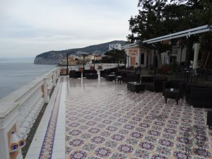 Viemos de trem, € 29,90, às 9:53h da estação Termini de Roma até Nápoles, onde chegamos às 11h. Já tínhamos contratado um transfer, € 80 para 4 pessoas, que nos levaria até o hotel Parco dei Principi, em Sorrento.