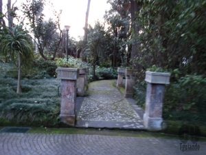 Vale super a pena tirar algumas horas para conhecer o jardim e arredores do hotel, tem muito verde, flores, pequenas trilhas, coreto, estátuas, terraço lindo e claro, a piscina. Está última estava fechada, até vazia, por ser inverno.