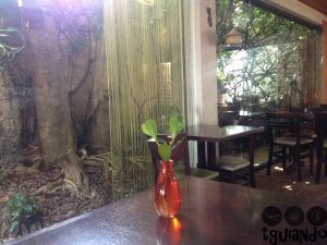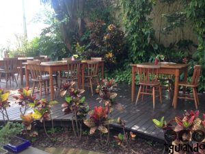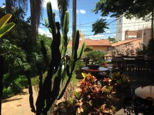 O lugar é muito aconchegante, com muitas folhas, muito verde, mesmo não estando do deck.