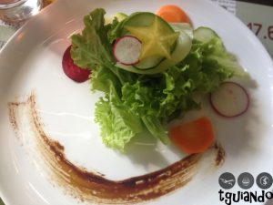 Antes da chegada dos pratos, nos ofereceram salada por cortesia.