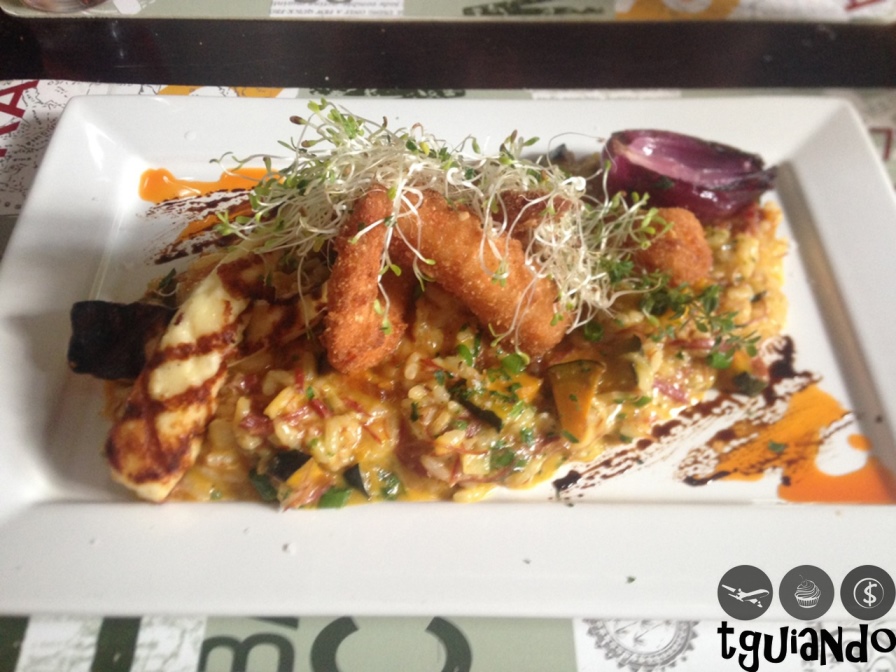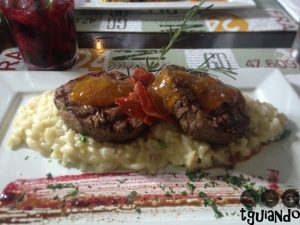 Ahh, os pratos… Depois da grande dúvida, decidimos por medalhão Cardeais (mignon grelhado com geléia de damasco, acompanha risoto de queijo brie e crocante de presunto Parma), R$ 76, e camarão arreatdo (camarões empanados com castanha de caju, acompanha risoto de carne seca, abóbora assada, cebola roxa e queijo coalho), R$ 80. Simplesmente, sensacionais!!