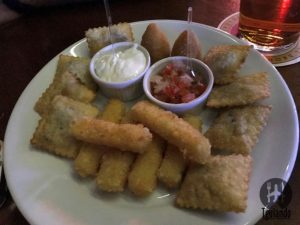 O cupom oferecia happy hour para duas pessoas, R$ 48,90, das 18h às 20:30h, com finger foods, petiscos, mini sanduíches, incluindo little burger, special fries, crispy chicken, fish and chips, além de pastéis, tacos e cebolas empanadas.