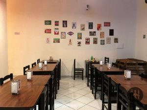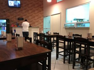 O ambiente é simples, com mesas e cadeiras de madeira, sem muito decoração. O atendimento é bom e rápido.
