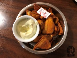Pedimos as bebidas e batata canoa (250g), R$ 7. Achamos o tamanho da porção legal, estava bem crocante, mas um pouco encharcada.