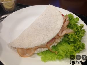 Pedimos tapioca peito de peru (peito de peru, queijo branco e tomate), R$ 9. Boa!!