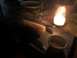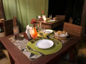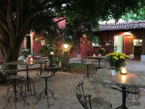 Ao chegar lá, o ambiente externo do restaurante estava todo decorado com velas e taças nas mesas, todas para casais, além de dois telões. Ficamos encantados com o lugar… muito lindo!!