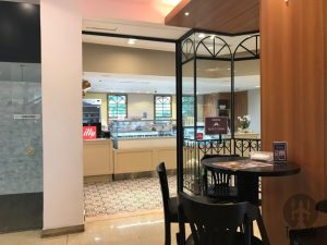 Uma pequena porta quase que despercebida, atrás de um pilar numa curva do corredor do térreo, onde notamos um movimento tímido de algumas pessoas em uma mesinha alta do lado de fora.