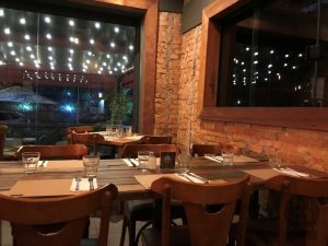 O ambiente não é muito grande, mas bem aconchegante, com luzes baixas, paredes rústicas, vidros, espelhos e móveis em madeira.