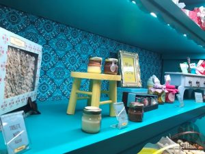 Do lado de dentro da Brigaderia tem poucas mesas, mas muito charmosas, decoração em azul e vários espelhos, além dos próprios doces que ficam expostos e estão disponíveis para presente.