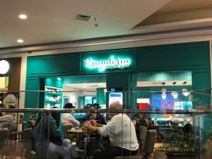 Bem perto da praça de alimentação, com uma fachada que chama atenção.