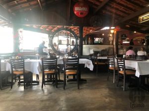 O lugar é rústico, com mesas, cadeiras e detalhes em madeira, toalhas brancas. Restaurante grande, com vários ambientes e mesmo assim estava lotado. O atendimento é bem rápido, conforme o movimento.
