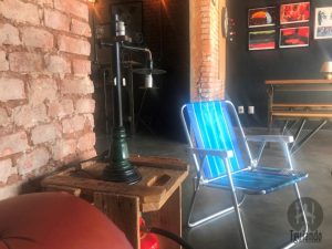 O ambiente é bem gostoso e descontraído, logo na calçada tem cadeiras de praia, depois uma área maior com sofás, cadeiras diferentes e mesa para jogos e, junto ao bar, uma parte menor com mesinhas altas bem aconchegante. Aos finais de semana e à noite, um food truck fica na calçada com opções de petiscos e lanches.