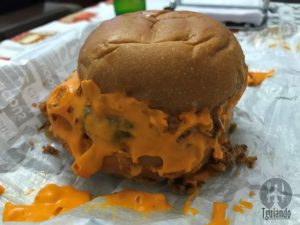 Pedimos êxtase fries (batata canoa, creme de cheddar com bacon, carne de porco desfiada, cebolinha e sour cream), simplesmente indescritível! Além dos lanches já pedidos da outra vez, pedimos o peguete burger (queijo prato, porção de bacon, alface americana e tomate + carne 160g), R$ 30.