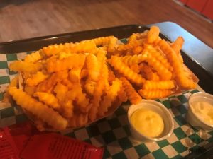 Pedimos as bebidas e BJ fries (100g de batata frita + maionese artesanal no pote), R$ 12.
