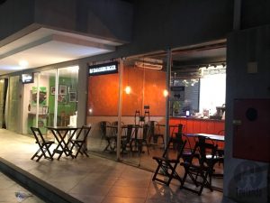 Fomos num domingo à noite e estava com fila. O lugar é pequeno, mas bem organizado. Algumas mesas dentro da hamburgueria e outras do lado de fora, perfeito para uma noite de calor.