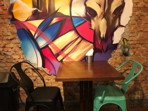 Fomos almoçar numa sexta-feira, antes que tudo voltasse a fechar por conta da pandemia. Chegamos por volta das 13:15h, estava bem tranquilo. Para o almoço self-service, estava sendo servido no fundo, uma outra sala com mesas, também decorada, e no canto o buffet. Gostamos bastante, muita variedade por R$ 54,90. Destaque para as carnes, para o pulled pork. Por questão de paladar, achamos estranho o bolinho de mac’n’cheese.