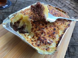 Para comer pedimos: tábua de presunto cru (trouxinhas de presunto cru fatiado, queijo branco, tomate cereja e manjericão), R$ 35, e escondidinho de carne seca (carne seca desfiada e temperada, requeijão cremoso, massa feita com batata e mandioca coberto com parmesão), R$ 25.
