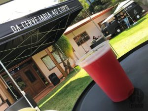 Entre as duas casas, fica uma kombi estilizada com 4 torneiras de chopp. Compra-se as fichas antes e depois pede o chopp.