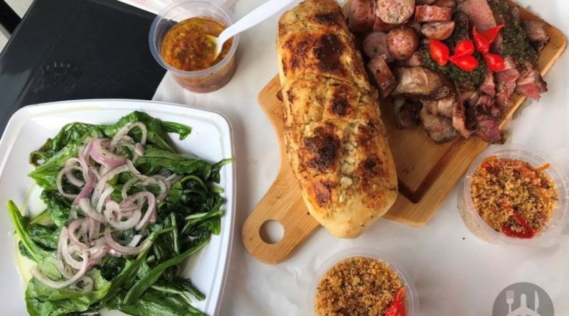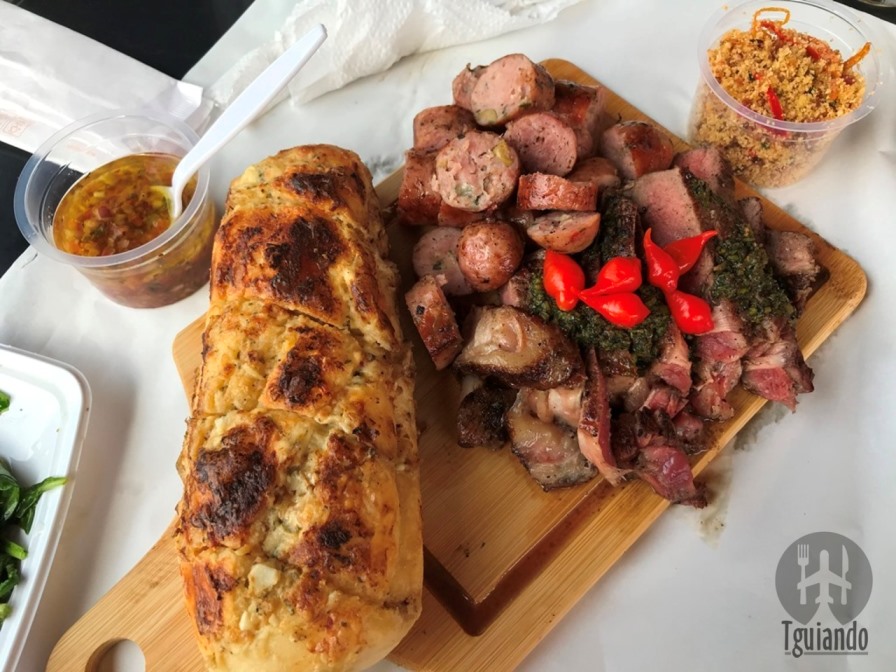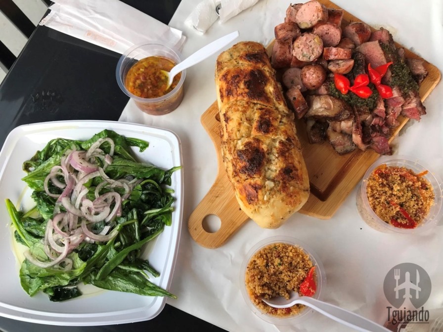 Apesar de o nome estar ligado à hambúrgueres, os quais íamos pedir, não resistimos a tábua especial feita no sábado. Sendo assim, pedimos bife ancho (acompanhado de farofa levemente apimentada linguiça caipira artesanal, vinagrete de chimichurri, pão de alho caseiro e salada de rúcula com cebola), R$ 80.