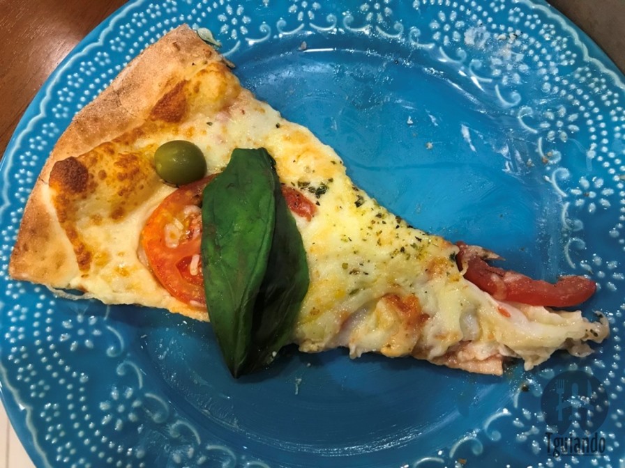 Pedimos meia calabria (molho de tomate italiano, calabresa fatiada, tomate em cubos, requeijão, cebola, pimenta dedo de moça, orégano e azeitonas verdes sem caroço), R$ 59, e meia margherita tradizionale (molho de tomate italiano, mussarela fatiada, tomate, parmesão, manjericão, orégano e azeitonas verdes sem caroço), R$ 63.