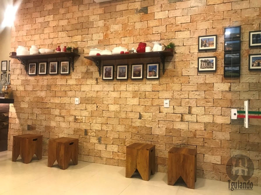 Uma fachada bem bonitinha e ambiente com objetos que rementem a Itália.