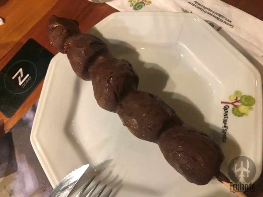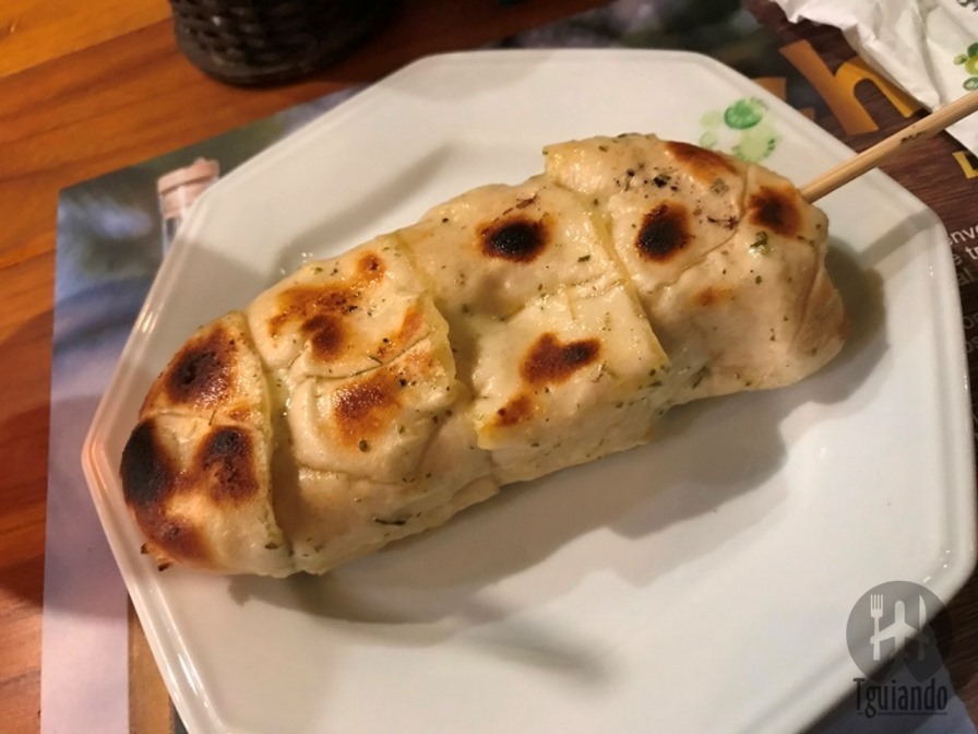 Os espetinhos escolhidos foram dos clássicos do quintal, sendo calabresa sem pimenta, kafta, panceta e pão de alho recheado com mussarela, R$ 9,90 cada.