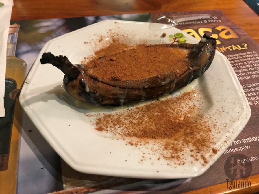 Para finalizar, morango com chocolate, R$ 14,90, e banana na brasa com leite condensado e canela, R$ 15,90.