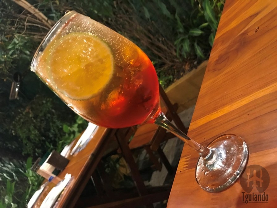 Pedimos aperol spritz (aperol espumante, água com gás e laranja), R$ 28.