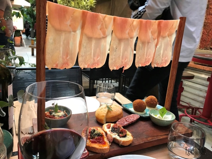 Sim, a entrada foi de tanto ver nas redes sociais, então não poderia ser diferente de antipasto Sughetto (para 2 pessoas, tábua típica italiana com presunto cru, tortino de abóbora e creme de gorgonzola, arancini de codorna com creme de parmesão, pappa al pomodoro, bruschetta da casa, linguiça feita pelo chef, focaccia caseira e mozzarella de búfala), R$ 79. A apresentação é linda e bem saborosa.