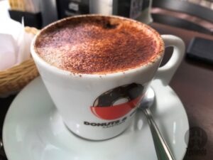 Para comer, pão de queijo recheado (requeijão), R$ 6,90, mini donut (creme bavarian, leite moça e banana com canela), R$ 6,60, além do donuts recheado com cobertura (boston creme), R$ 7,60, e donut nutella, R$ 6,90.