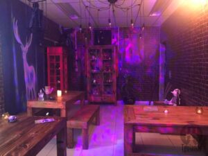 Confesso que a decoração é bem legal, tudo remete ao Harry Potter e coisas de fantasia.