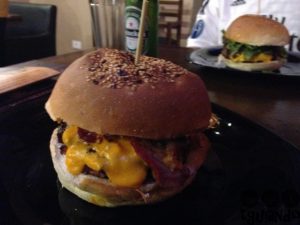 Sendo assim, pedimos Johnnie Walker cheddar (pão artesanal salpicado com gergelim e linhaça, recheado com muito bacon, folhas frescas e tomate, creme cheddar preparado com whisky Johnnie Walker, cebola e um hambúrguer de 220g de pura picanha, bem temperado, moído na hora e assado na churrasqueira), R$ 31, cheese bacon (pão artesanal salpicado com gergelim e linhaça, recheado com bacon, duas generosas fatias de queijo prato Polenghi e um hambúrguer de 180g de carne nobre bem temperado, moído na hora e assado na churrasqueira), R$ 21, e cheese egg bacon (pão artesanal salpicado com gergelim e linhaça, recheado com bacon, ovo caipira, duas generosas fatias de queijo prato Polenghi e um hambúrguer de 180g de carne nobre bem temperado, moído na hora e assado na churrasqueira), R$ 21.