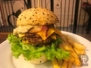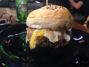 Queríamos mesmo era o lanche que o hambúrguer é envolto no bacon, que leva o nome da casa, mas ele é enorme e, além disso, quando saímos, os donos nos informaram que esse lanche é demorado então só é feito durante a semana, quando se tem menos movimento.