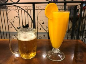 Pedimos dois combos e, uma opção acrescentamos chopp, R$ 4,50, e no outro, suco de laranja natural, R$ 3,50.