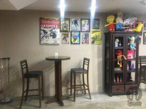 Bem arrumadinho, decoração com quadros de desenhos animados.